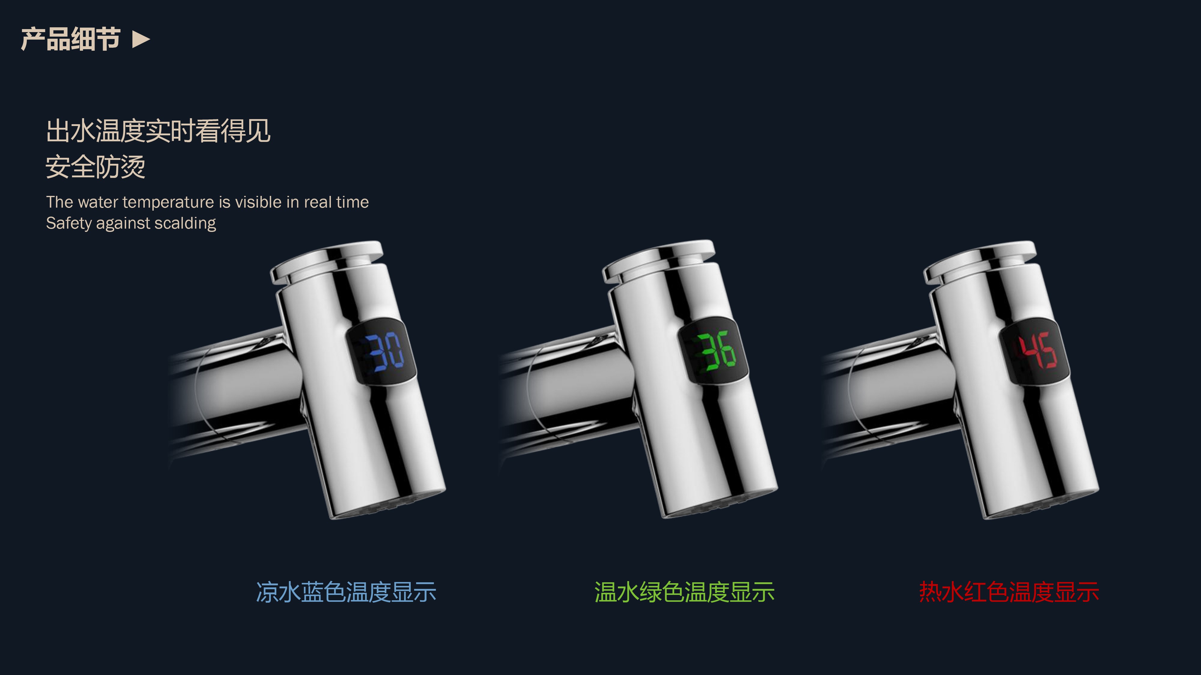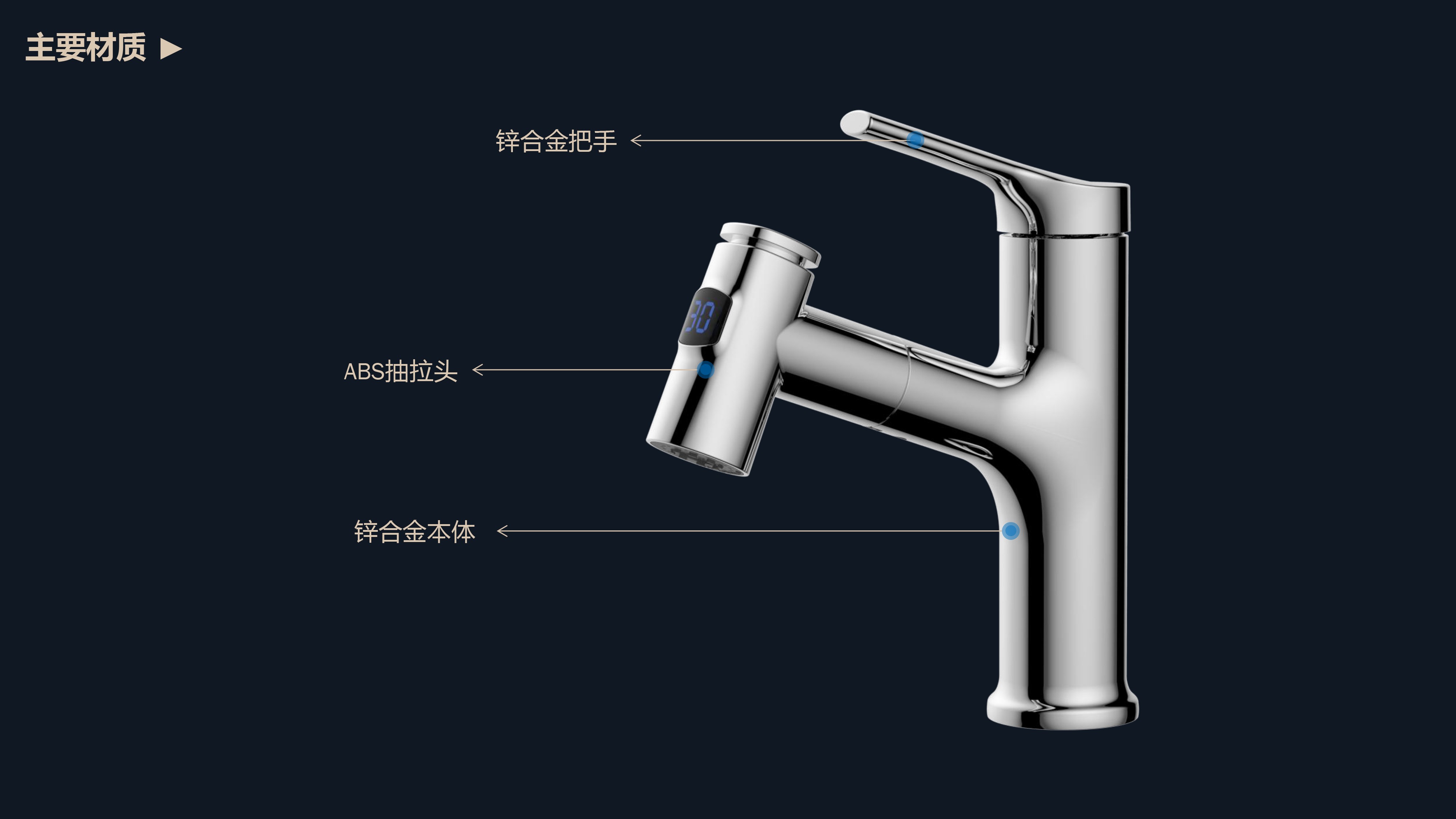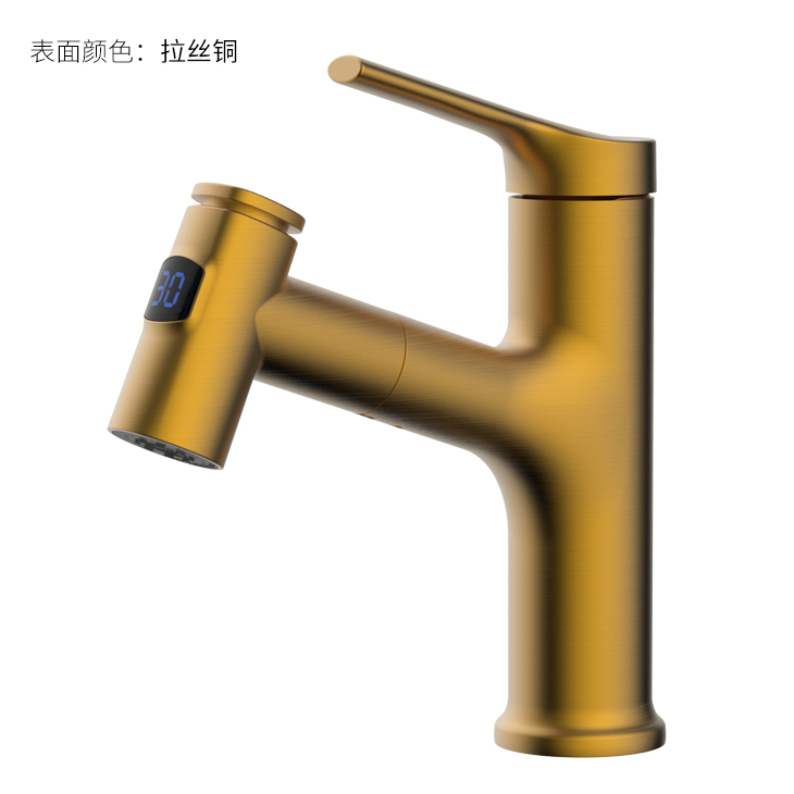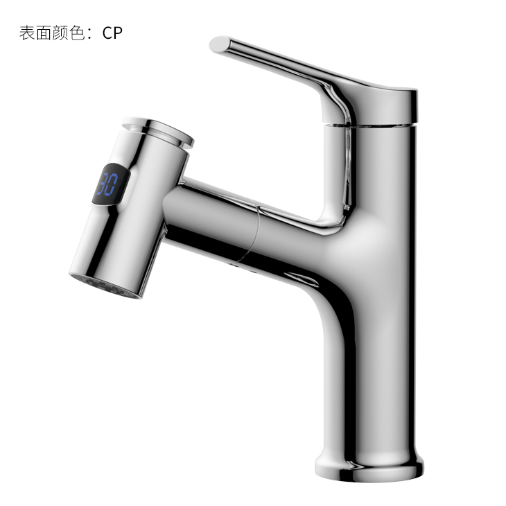 數(shù)顯面盆抽拉龍頭,解鎖龍頭舒適用法;360°全方位清洗;日常洗頭利器,抽拉出水輕松洗;按壓切換兩功能水花抽拉頭;出水溫度實(shí)時(shí)看得見,安全防燙