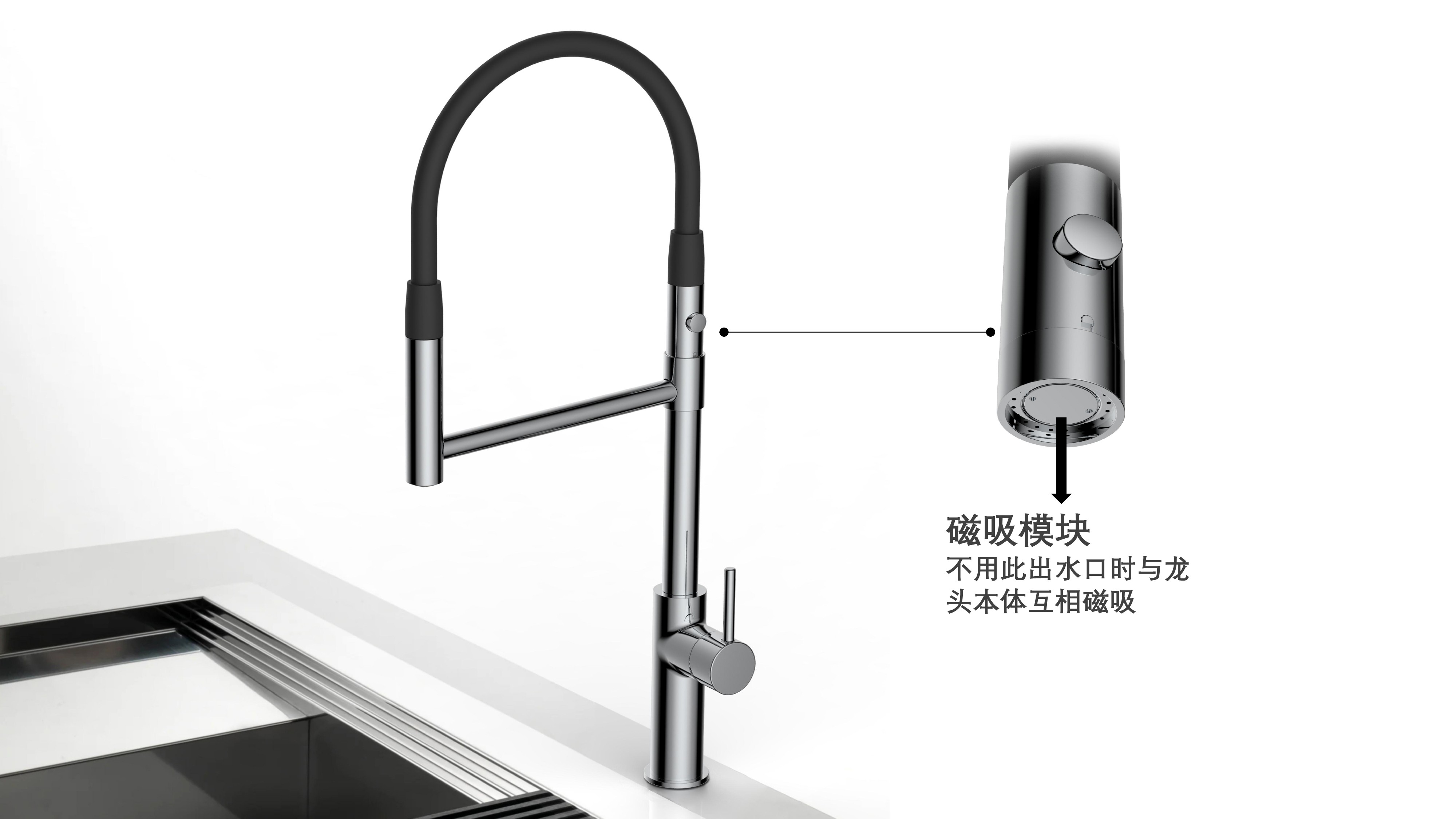 cUPC/ NSF61/ AB100/ NSF372/ Lead Free/ ADA認(rèn)證;磁吸抽拉廚房龍頭;磁吸抽拉頭可旋轉(zhuǎn)展開使用,不用時(shí)旋轉(zhuǎn)回原位磁吸固定;兩種出水可根據(jù)需求切換