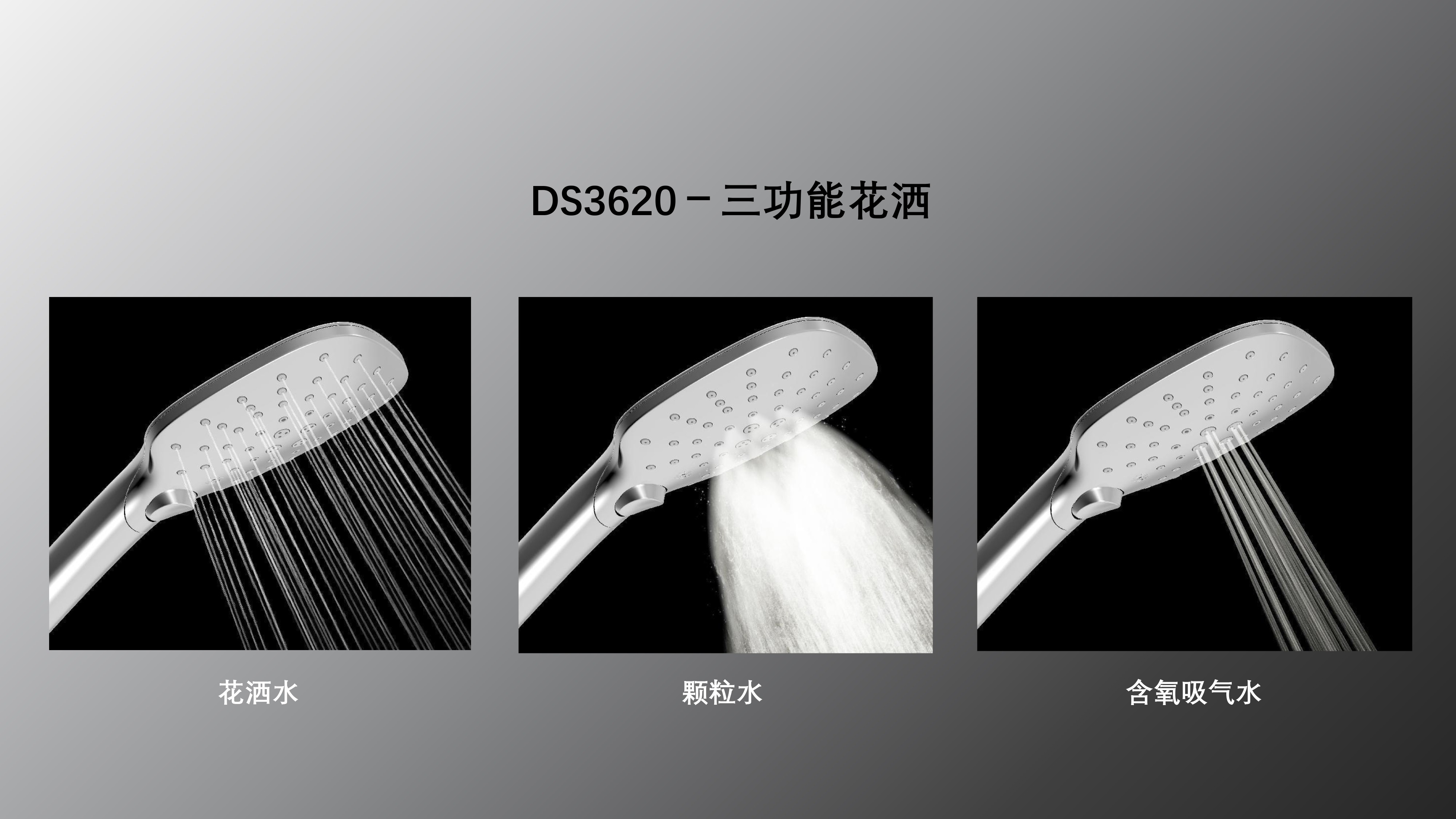 方形寬大頂噴富氧出水;Z字形三通;按壓切換花灑出水/頂噴出水